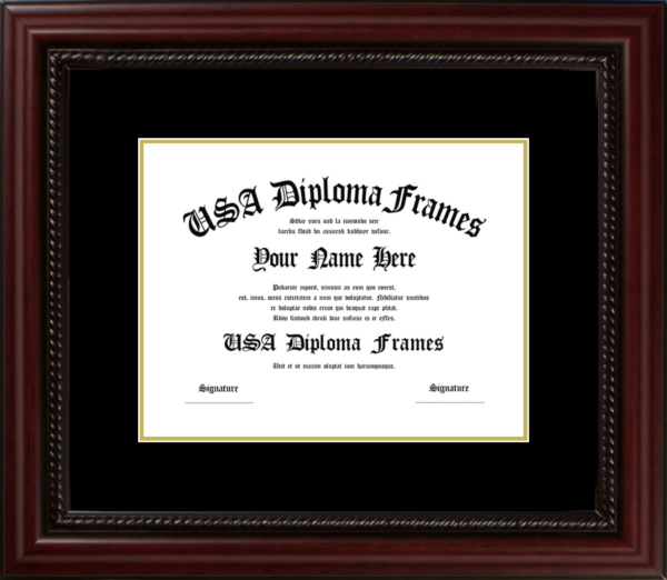 College diploma frames deserve a place on your wall! Custom build your university degree frame today. We offer a variety of college diploma frames ranging from simple to more decorative. Our cherry mahogany frames are a traditional choice sure to last a lifetime. For a more modern look, check out our black matte or white matte frame mouldings. If you really want to make a statement, the cherry rope and executive black mouldings really make a showing. Whatever you choose, We will build your diploma frame with care and customize your diploma frame the way you want it!