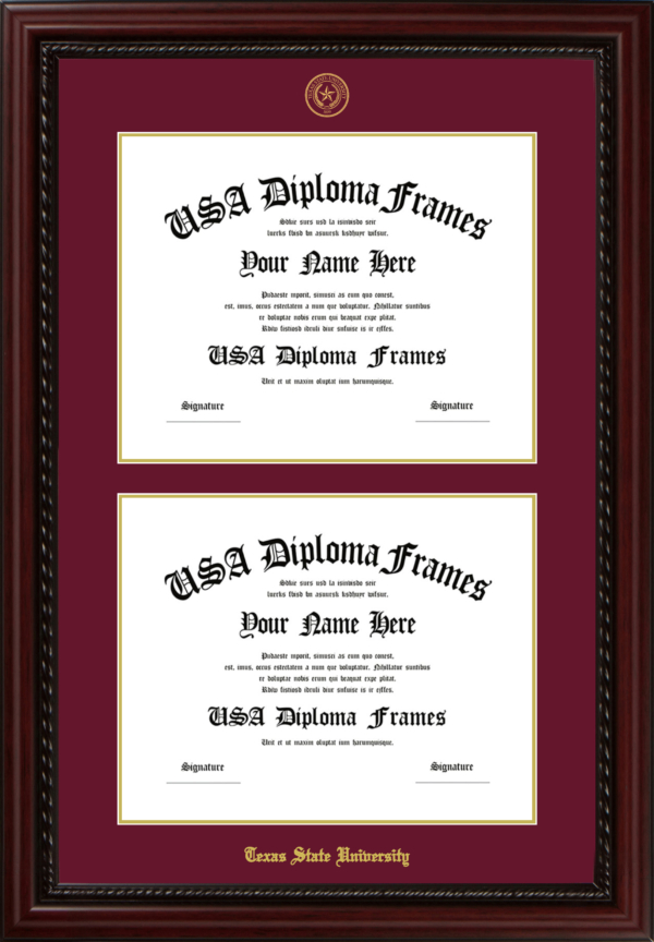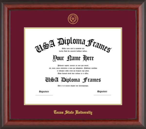 Celebrate your Texas State University achievement with a custom diploma frame.