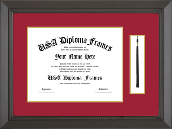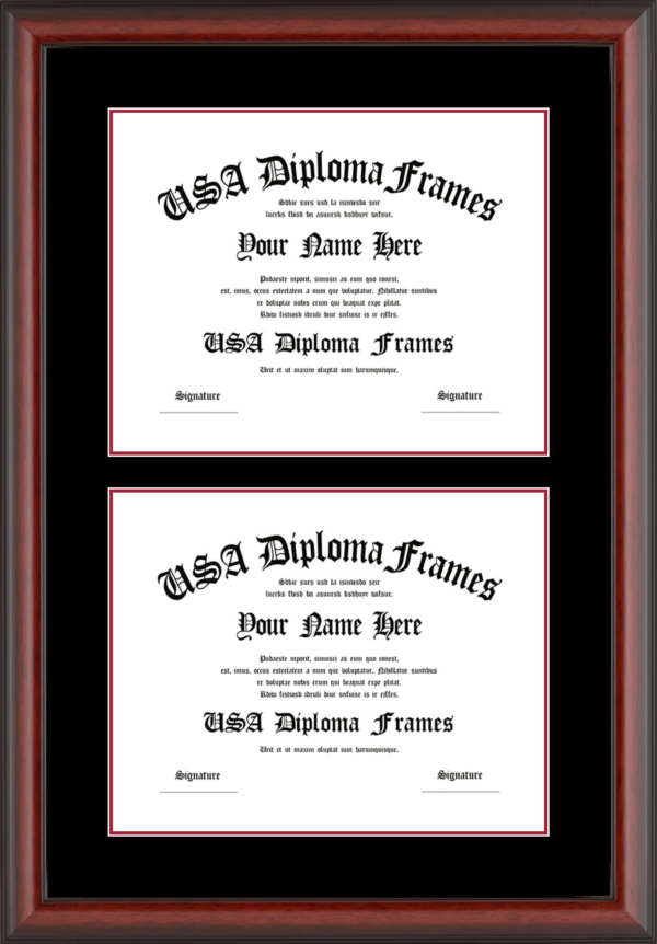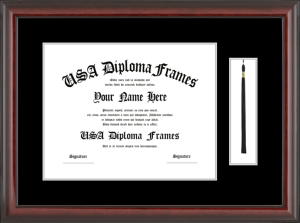 College diploma frames deserve a place on your wall! Custom build your university degree frame today. We offer a variety of college diploma frames ranging from simple to more decorative. Our cherry mahogany frames are a traditional choice sure to last a lifetime. For a more modern look, check out our black matte or white matte frame mouldings. If you really want to make a statement, the cherry rope and executive black mouldings really make a showing. Whatever you choose, We will build your diploma frame with care and customize your diploma frame the way you want it!