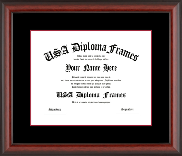 College diploma frames deserve a place on your wall! Custom build your university degree frame today. We offer a variety of college diploma frames ranging from simple to more decorative. Our cherry mahogany frames are a traditional choice sure to last a lifetime. For a more modern look, check out our black matte or white matte frame mouldings. If you really want to make a statement, the cherry rope and executive black mouldings really make a showing. Whatever you choose, We will build your diploma frame with care and customize your diploma frame the way you want it!
