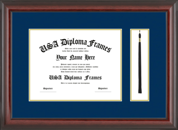College diploma frames deserve a place on your wall! Custom build your university degree frame today. We offer a variety of college diploma frames ranging from simple to more decorative. Our cherry mahogany frames are a traditional choice sure to last a lifetime. For a more modern look, check out our black matte or white matte frame mouldings. If you really want to make a statement, the cherry rope and executive black mouldings really make a showing. Whatever you choose, We will build your diploma frame with care and customize your diploma frame the way you want it!
