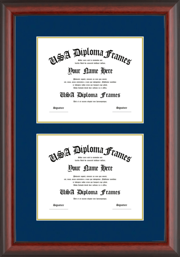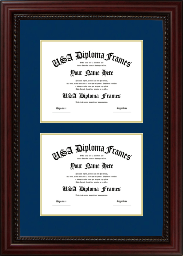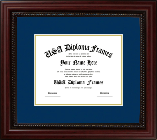 College diploma frames deserve a place on your wall! Custom build your university degree frame today. We offer a variety of college diploma frames ranging from simple to more decorative. Our cherry mahogany frames are a traditional choice sure to last a lifetime. For a more modern look, check out our black matte or white matte frame mouldings. If you really want to make a statement, the cherry rope and executive black mouldings really make a showing. Whatever you choose, We will build your diploma frame with care and customize your diploma frame the way you want it!