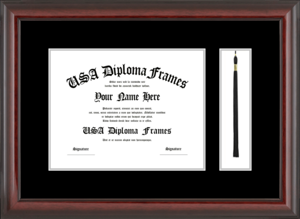 College diploma frames deserve a place on your wall! Custom build your university degree frame today. We offer a variety of college diploma frames ranging from simple to more decorative. Our cherry mahogany frames are a traditional choice sure to last a lifetime. For a more modern look, check out our black matte or white matte frame mouldings. If you really want to make a statement, the cherry rope and executive black mouldings really make a showing. Whatever you choose, We will build your diploma frame with care and customize your diploma frame the way you want it!